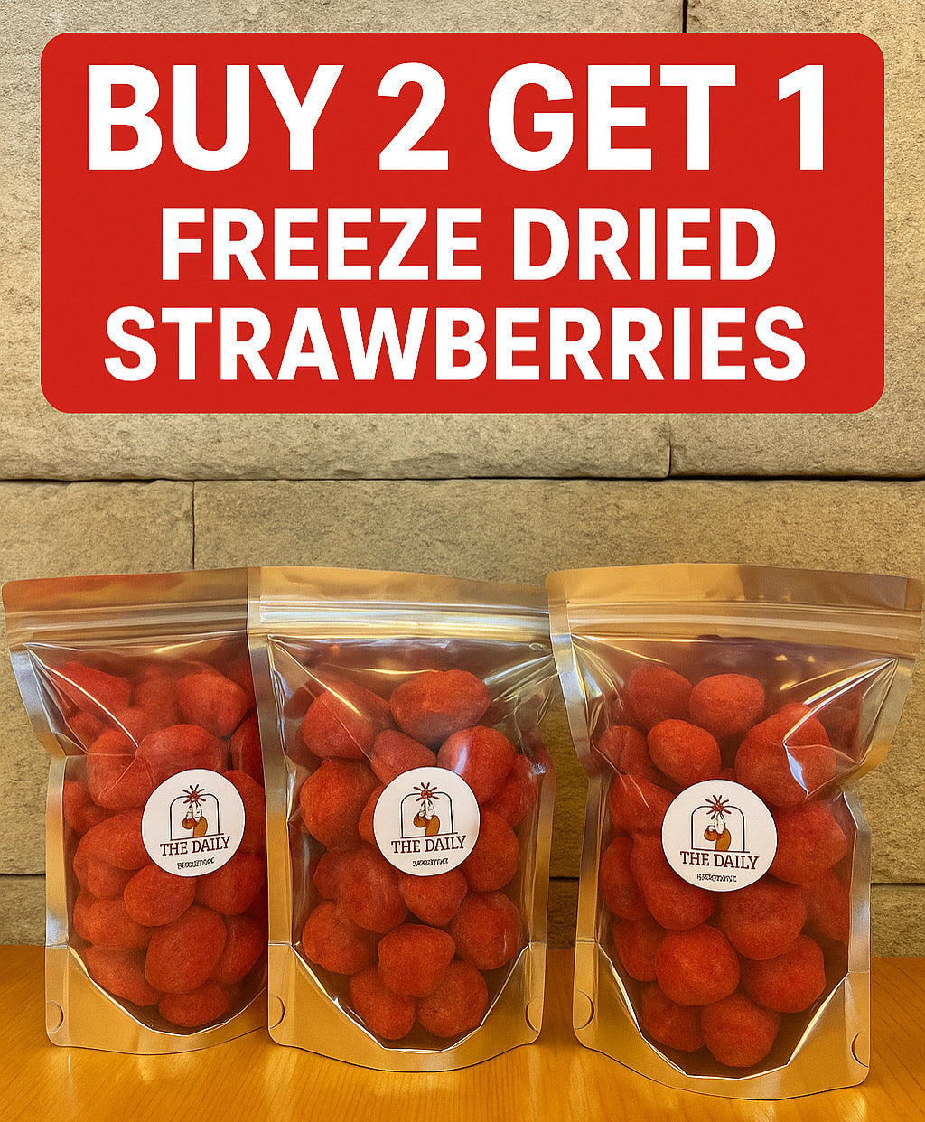 Buy 2 get 1 Crunchy strawberries