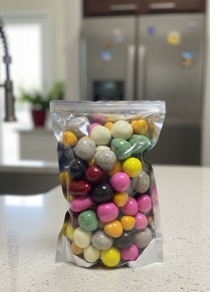 Crunchy strawberry-core dragees coated in premium chocolate, available in a variety of delicious flavors.