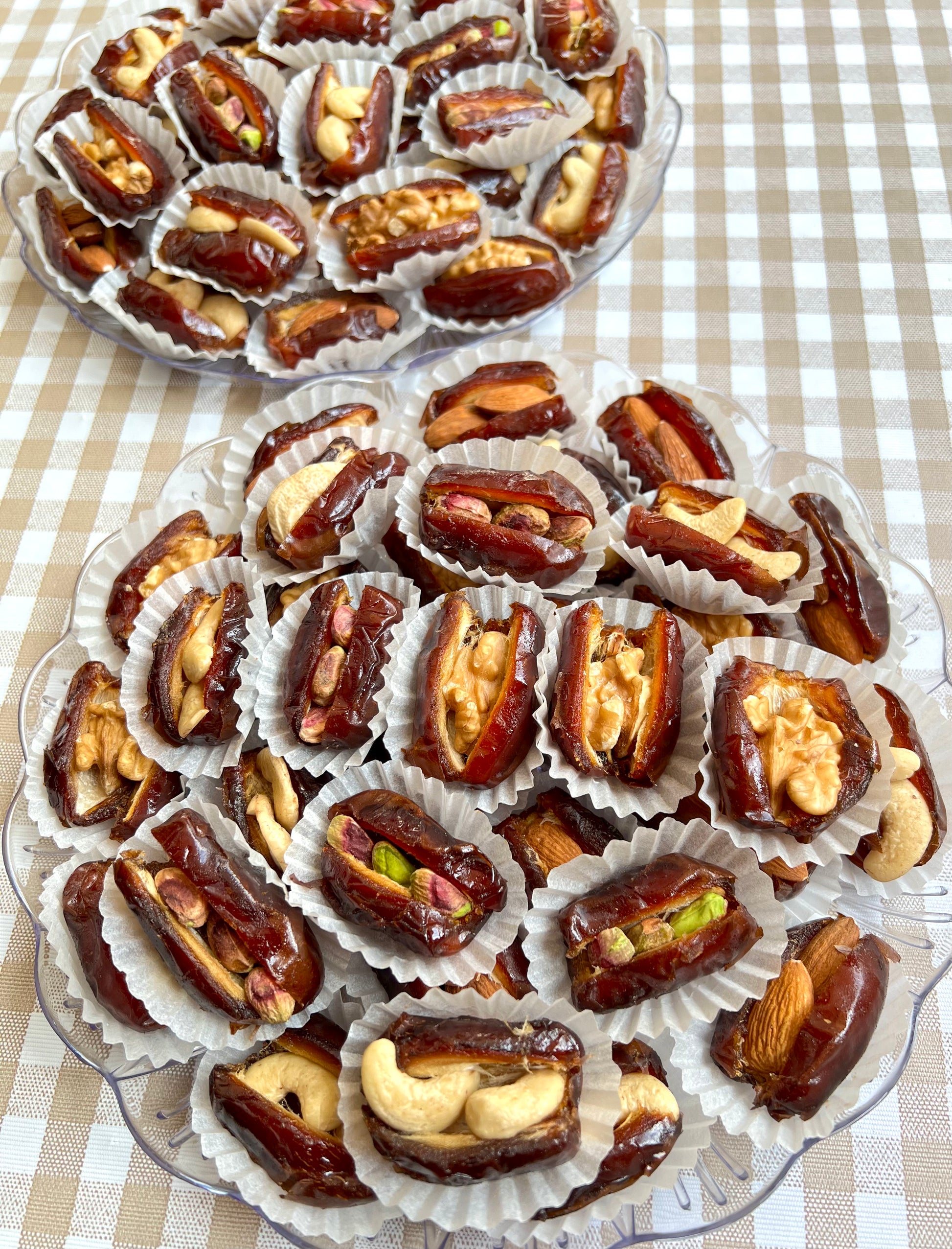 Dates stuffed with fresh nuts. Available in 500g and 1kg